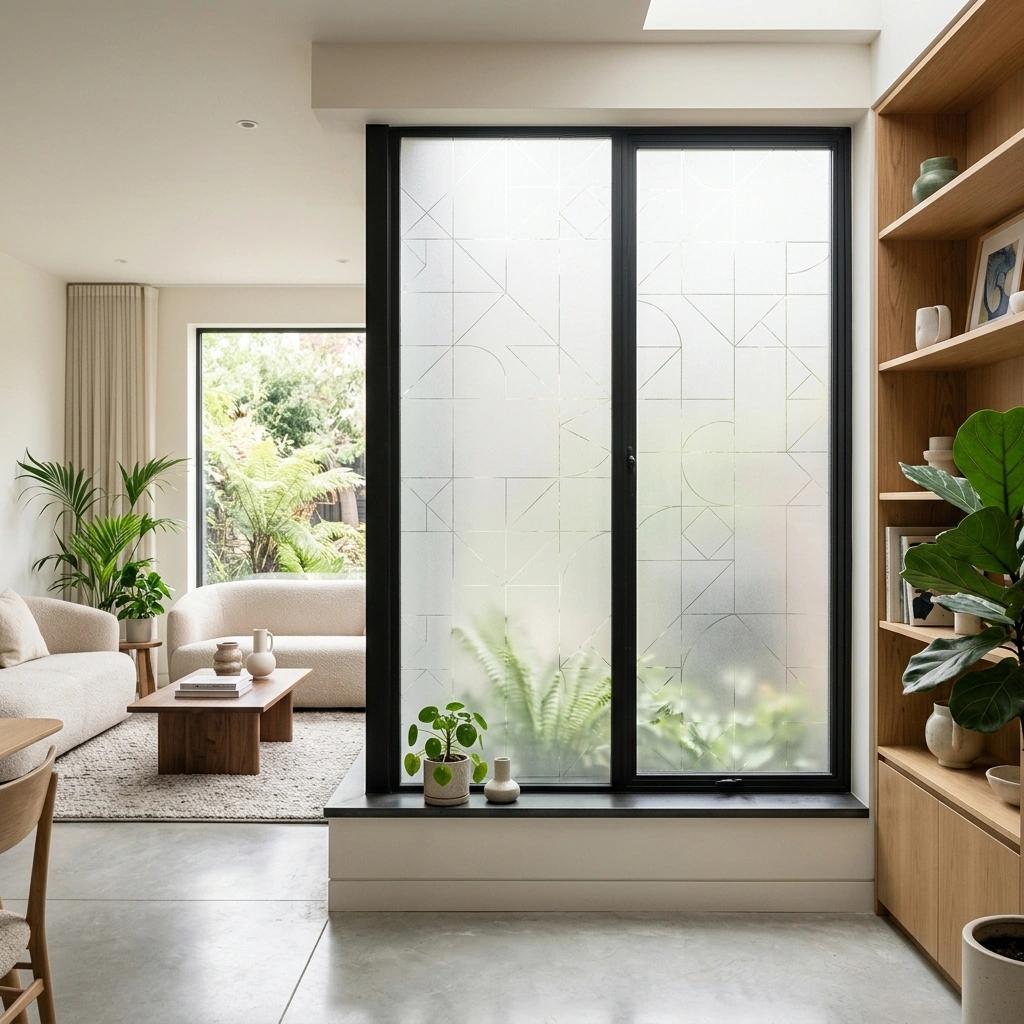 Films à motifs ou dépolis pour personnaliser vos vitrages et créer des espaces intimes.